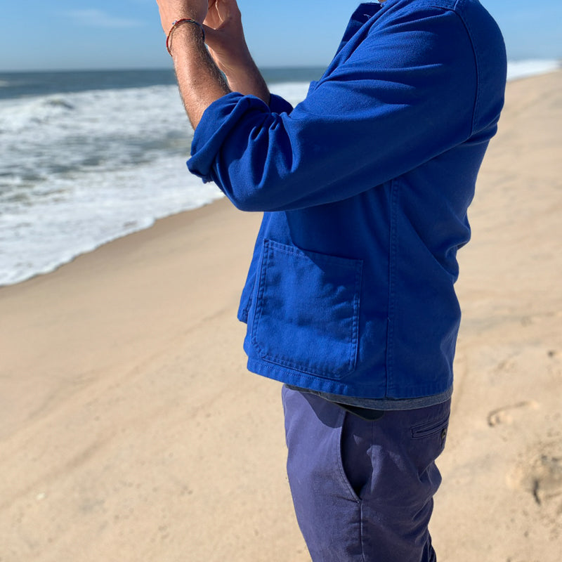 A classic French workwear jacket from Papat. With four patch pockets, button front and cuffs. In traditional French blue.